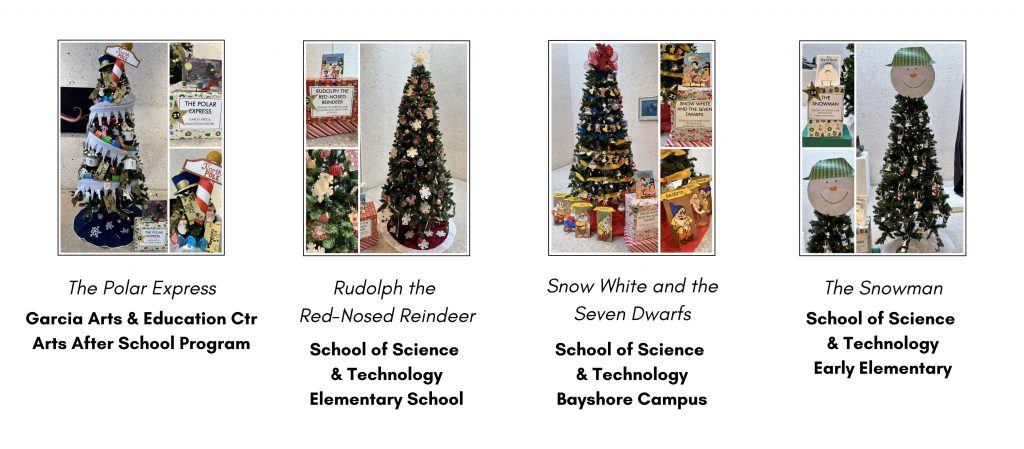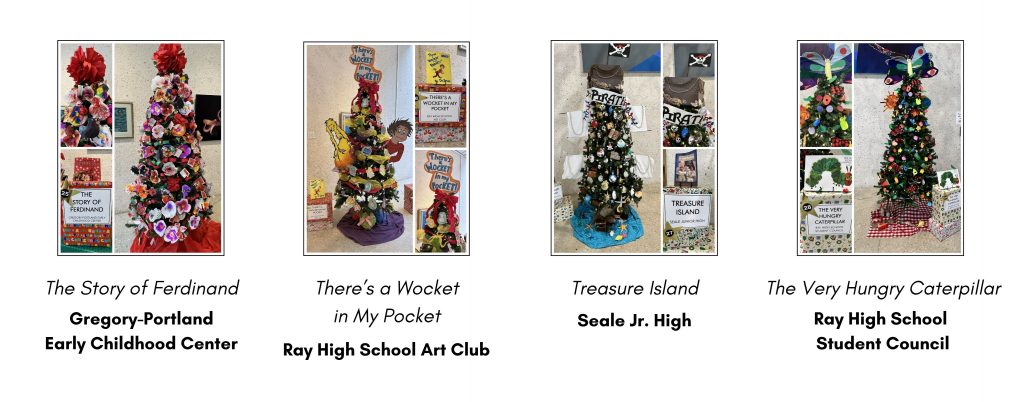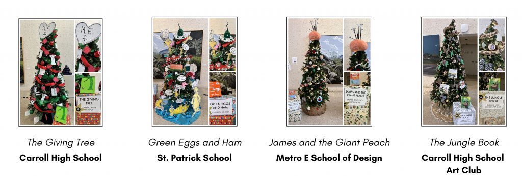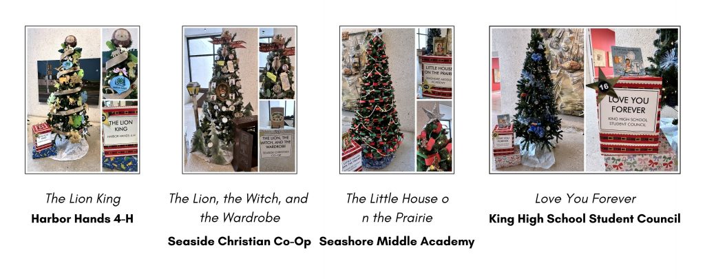 The 2025 Christmas Tree Forest includes the following book themes and youth organizations. Click on each image to view it in closer detail.