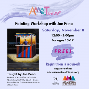 Join professional artist and TAMU-CC professor Joe Peña for a hands-on oil painting workshop where teens will learn fundamental to intermediate techniques while bringing their own creative vision to life on canvas – materials provided.