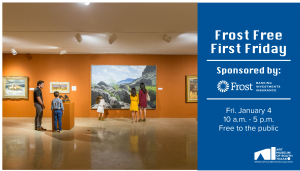 The first Friday of every month is FROST FREE FIRST FRIDAYS! Enjoy free public admission to the Art Museum of South Texas. The Gift Shop and Hester’s Cafe also are open to the public. For more information, contact the Art Museum at (361) 825-3500. Sponsored by: Frost Bank.