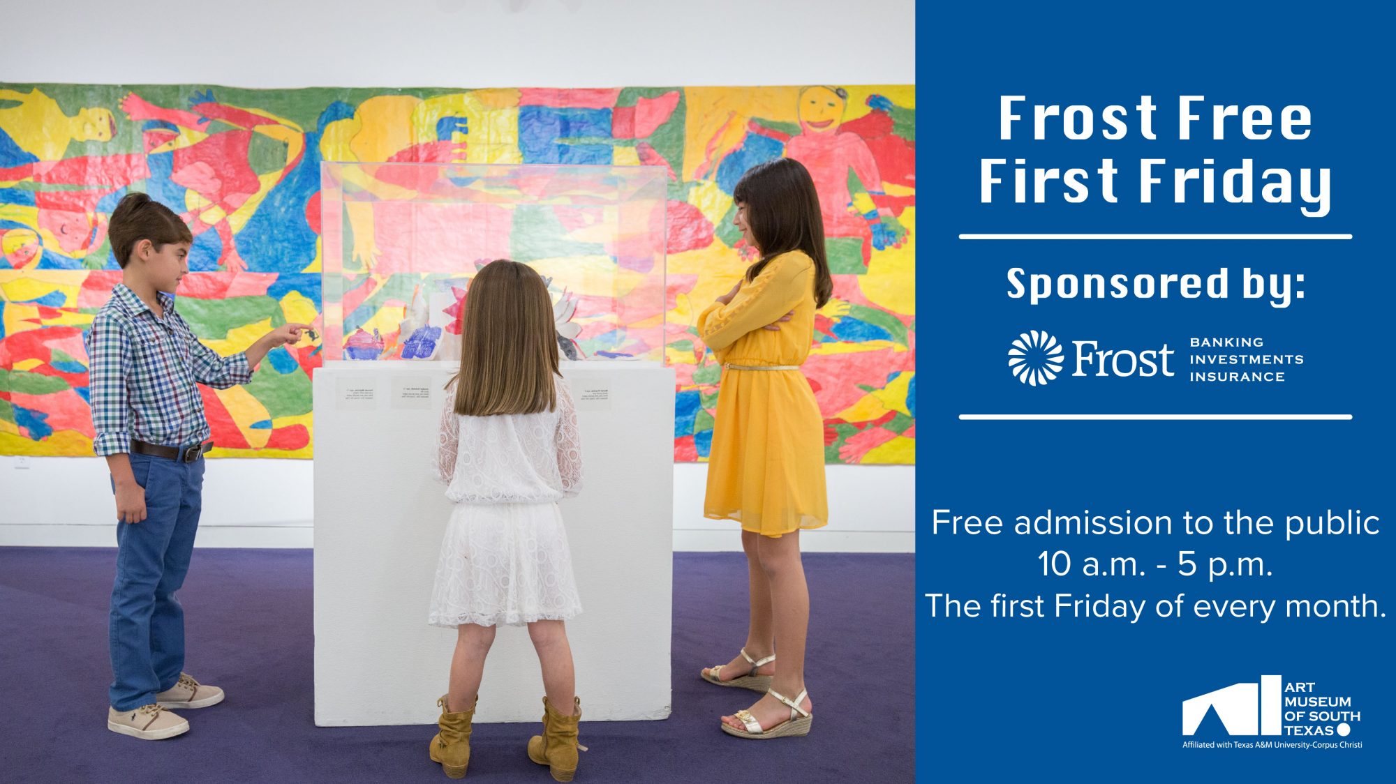 The first Friday of every month is FROST FREE FIRST FRIDAYS! Enjoy free public admission to the Art Museum of South Texas. The Gift Shop and Hester’s Cafe also are open to the public. For more information, contact the Art Museum at (361) 825-3500. Sponsored by: Frost Bank.
