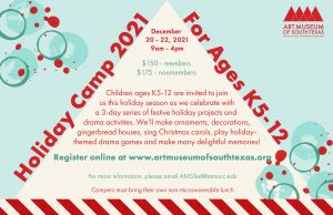 $150 – $175Children ages K5-12 are invited to join us this holiday season as we celebrate with a 3-day series of festive holiday projects and drama activities. We’ll make ornaments, decorations, gingerbread houses, sing Christmas carols, play holiday-themed drama games and make many delightful memories!