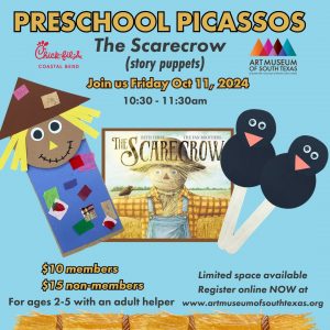 Get ready for the fall season at the AMST! We’ll be exploring the changing seasons through the delightful story of The Scarecrow by Beth Franklin. After that, we’ll get creative and make our very own puppets of the scarecrow and his friend the crow using materials like construction paper, tissue paper and fabric!