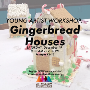 Frosting, candy canes, gumdrops, graham crackers…it’s time for our annual gingerbread house-making event at the Art Museum of South Texas! We’ll listen to holiday music and create an original gingerbread house that’s sure to delight one and all.