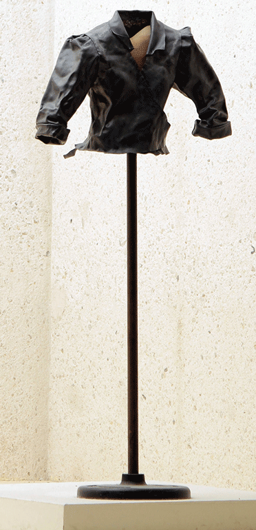 The art of Marilyn Lanfear has been part of the Art Museum of South Texas since 1998 when the Norma Kamali Wrap Blouse With Designer Label became part of the Permanent Collection. With this exhibition we are able to look at the larger body of Lanfear’s work, and to see examples from her multiple areas of investigation. The artist has never been one to continue working in any one style, or even one material. Rather she has explored widely divergent media – lead, fabric, paper, ink washes, wood, stone – and in each material she has found a three-dimensional expression for an inner idea. This wide-ranging body of work is at once similar and different. Lanfear’s work is representational and narrative, and comes out of her roots in Texas and in her family. At the same time, the pieces are conceptual, in that there is an idea, an obscured memory that is present, but not yet expressed. Lanfear is dedicated to the saving, holding, and sharing of these precious memories of the past and in re-interpreting those events and memories in new and inventive ways. One of the intriguing aspects of her work is Lanfear’s versatility and ease in moving through the various media. Never afraid of venturing into new directions, Lanfear taught herself to carve in wood, and then transferred that method into stone when she created her newest piece entitled Headstones, the cover image of this exhibition’s catalogue.