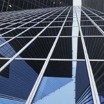 Tommy Fitzpatrick’s work titled, Upside Down, is done in dramatic perspective of the skyscraper Williams Tower in Houston, Texas. Fitzpatrick’s painting is hard-edged and depicts the building from a severe angle. The luminosity of the windows and the vanishing perspective hold the attention as one might feel a little vertigo looking at this painting. Another artist in the collection whose art is always interesting to Fitzpatrick is California-based Ed Ruscha. The pastel drawing of two words on a gradient background is robust with possibilities. In this pastel, Ruscha includes two graphic words “High Priority”. The lettering is radiant white, from the white of the paper, glowing brightly from the soft colors of pastels. This is a work of art that may ask more questions than it answers! Other artists’ work who Fitzpatrick is interested by include Jennifer Barlett, Josef Albers, and Frank Stella. Find their art in the gallery and see if you can discover why, or how they influence Fitzpatrick.