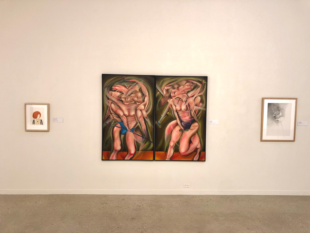 Each artist is represented by one or in a few cases two works from a series. Each has a story or experience to relay. Consider the material, how would it be described to someone who has not seen it, what makes the adjectives come to mind? All of this alludes to meaning and why a work of art is created.