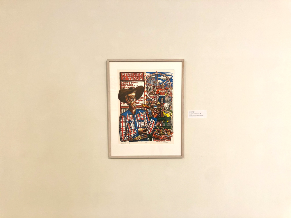 The works of art in the Upper Gallery and the Mezzanine are works that came into the collection as early as 1977 and as recently as 2021. These works coming into the collection are the result of people who understood the Art Museum of South Texas began collecting art in its early days, beginning with works on paper, until that time when larger works were offered and acquired. The museum label tells us all of these details, such as who is the artist, when it was completed, what is it called (or not called) , and from who did the artwork come from. Labels give context for historical reference and how the work of art came to be here.