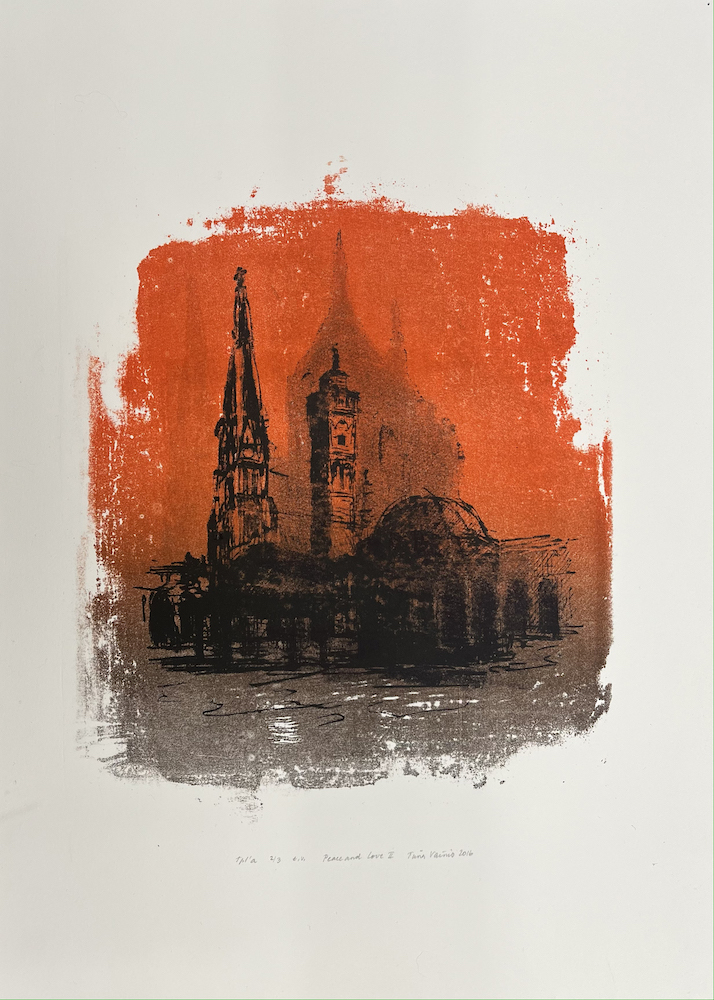 downtown Turku, as well as Gallery Joella, located along the iconic Aura River. Seventeen members from their organization have been selected to provide a comprehensive sampling of their vibrant creative community. While many of these artists demonstrate expertise in traditional print processes such as woodblock printing, etching, and lithography, others utilize innovative approaches through materials and techniques. This exhibition is part of a wider exchange between print communities in Finland and the US; an exhibition of seven American artists was featured at Gallery Joella in June-July of this year.