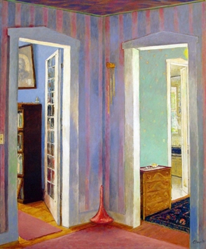AMST Curator of Exhibitions, Deborah Fullerton, describes Stout’s early work, of both interiors as well as his coastal meditations as revealing, “a sensitive and abiding interest in light as it travels through space and around objects.” In the exhibition catalogue, available in the AMST Gift Shop, David E. Brauer expands on Stout’s expression of light and ongoing tension between interiors and exteriors by comparing his work to paintings by seventeenth century Dutch masters – minus human figures, still life, or settings. The Dutch masters strove to depict a specific place at a specific time, whereas Stout’s compositions allusively suggest settings in order to depict his memories of these places, regardless of time. Stout’s ability to convey an emotion associated with a memory through his work is what makes him a master.