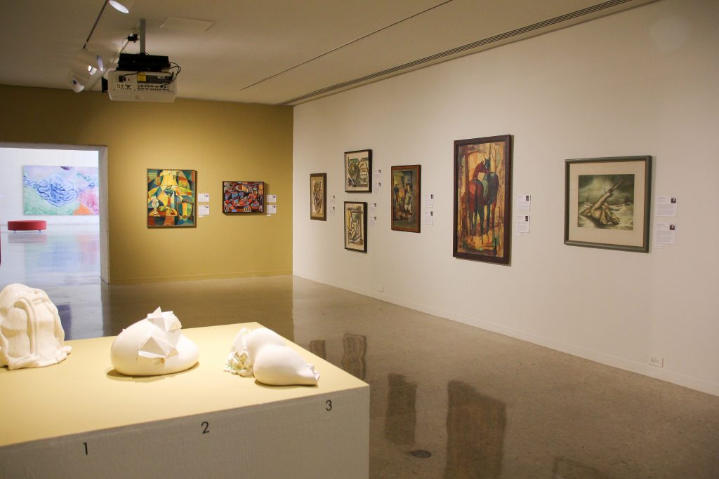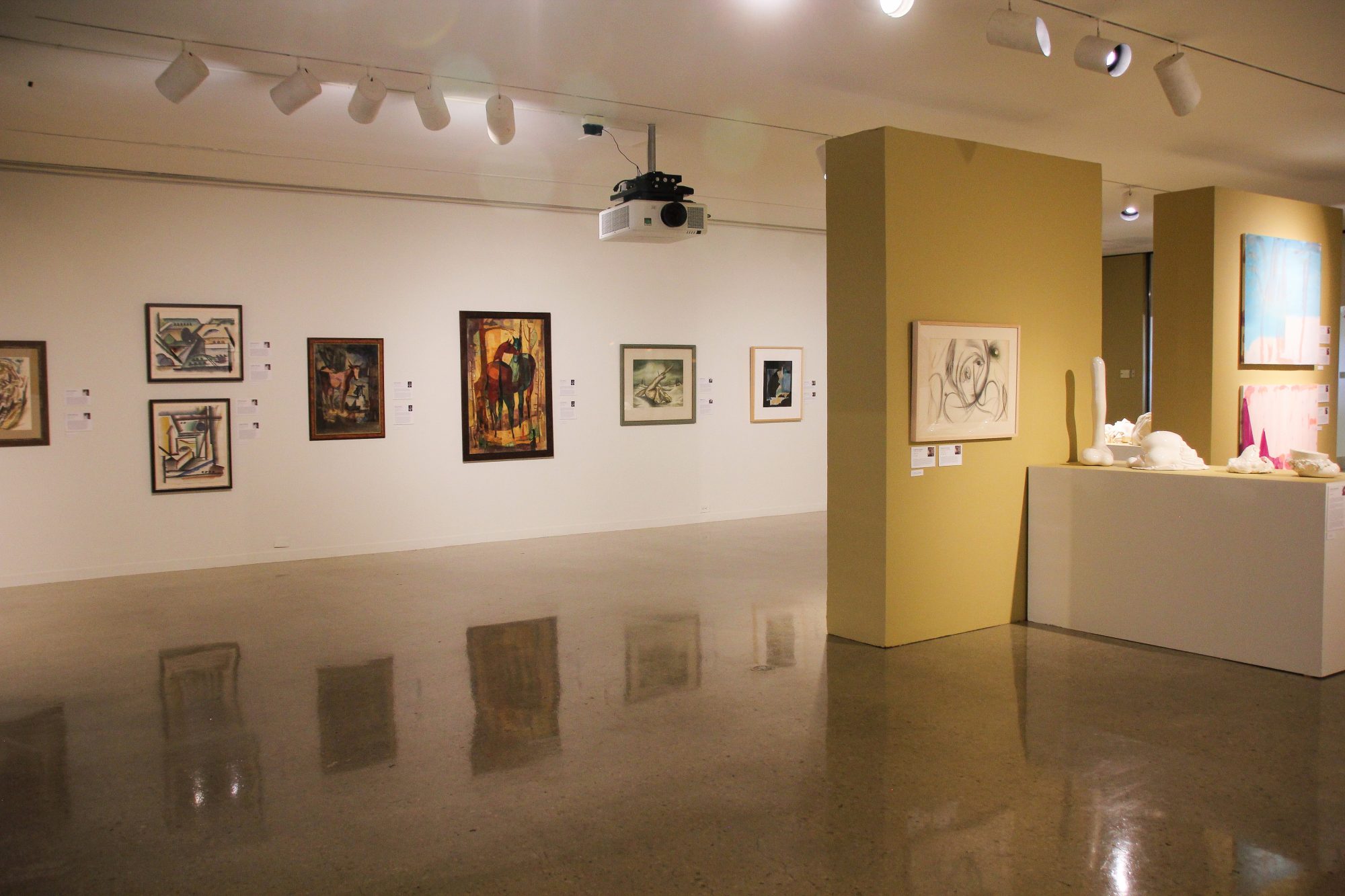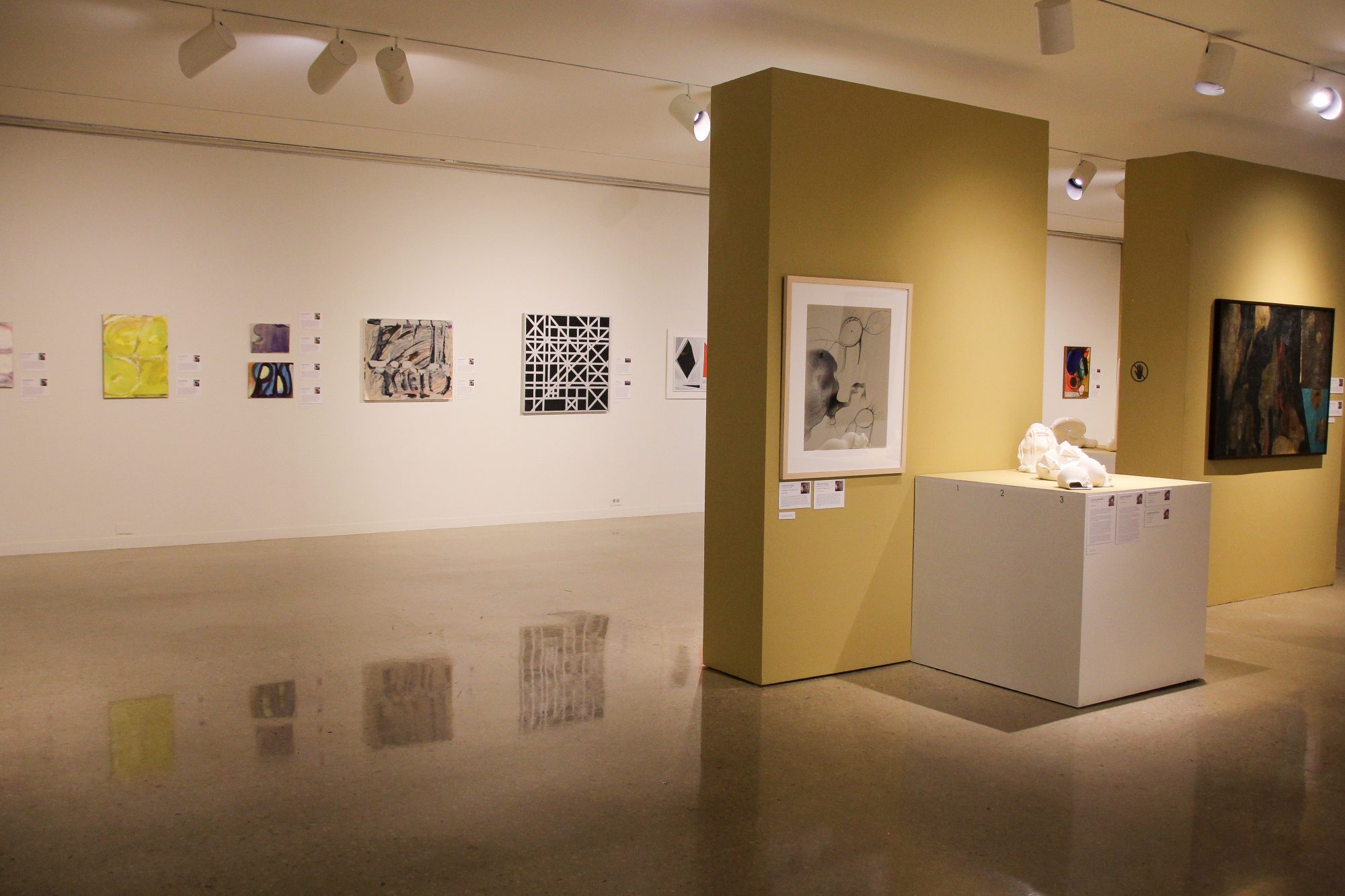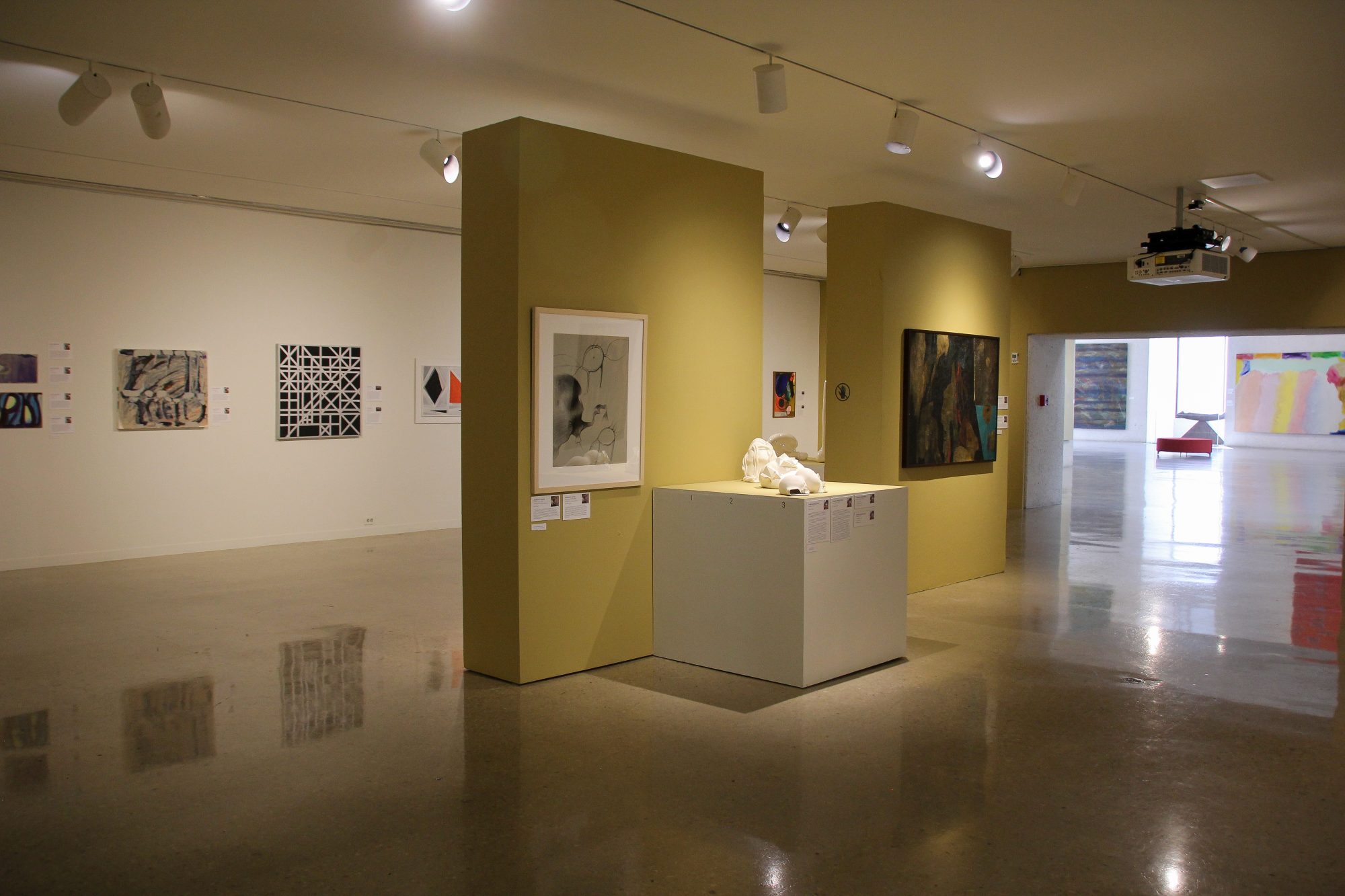 As a modern artist, Dorothy Hood (1918-2000) figures prominently. Showing her paintings, collages, and drawings alongside other modern and contemporary artists allows these visual dialogues to continue. The psyche of the mind and the dialogue of artists working abstractly resonates on many levels with a variety of approaches in chosen media and scale in both two and three dimensions.