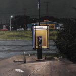 An urban area, or built-up area, is a place for humans to settle, to make a home, and to live amongst others. Out of this “sea of humanity” we co-exist and create a culture and a social fabric. The artists within this exhibition depict what is in their life experience by exaggerating and emphasizing the energy of these various places and conditions. The viewer is provided a way to see color and form, in ways that express visual statements, expanding on our shared human experience. At times, the work is more abstract and presents ideas primarily about how a work of art is made- with a large brushstroke, and a field of blue-gray representing a large expanse of water as seen in New York-based artist Margaret Evangeline’s Watermark, 2018. When we look through architect Philip Johnson’s windows, onto Corpus Christi Bay, the effect is not unlike Evangeline’s gesture of mark-making akin to some of the bobbing of the water seen in certain weather conditions.