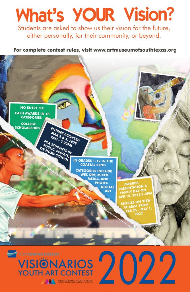 The Port of Corpus Christi and the Art Museum of South Texas are pleased to announce the 2022 Visionarios Youth Art Contest for students in grades 1-12. This juried competition encourages young people to integrate the arts into core curriculum and provides an opportunity for them to be recognized for their efforts.