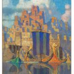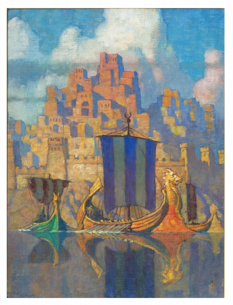 N. C. Wyeth (1882–1945) has long been considered one of the nation’s leading illustrators. In the early 1900s, he studied with illustrator Howard Pyle in Delaware. In 1911, he built a house and studio in nearby Chadds Ford, Pennsylvania. Later, he bought a sea captain’s house in Maine and in 1931 built a small studio, which he shared with his son Andrew and his daughters. The exhibition includes illustrations for books by Robert Louis Stevenson and Washington Irving as well as historical scenes, seascapes and landscapes.