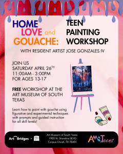 Join professional artist and TAMU-CC professor Joe Peña for a hands-on oil painting workshop where teens will learn fundamental to intermediate techniques while bringing their own creative vision to life on canvas – materials provided.